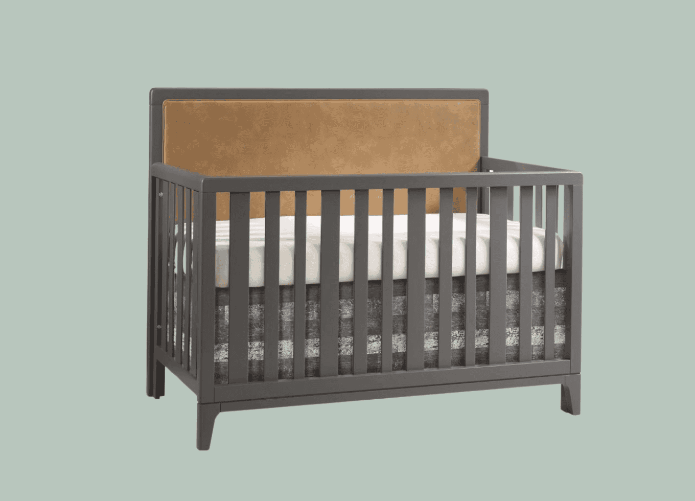 Nursery Tip: To create the perfect nursery, choose furniture that can complement this vintage-inspired color without being overly kitschy. The Natart Kyoto crib features a modern leather headboard that perfectly juxtaposes the vintage theme, adding timeless elegance to your nursery. The crib comes in Charcoal, Linen, or White finishes, all of which work well with Quietude.